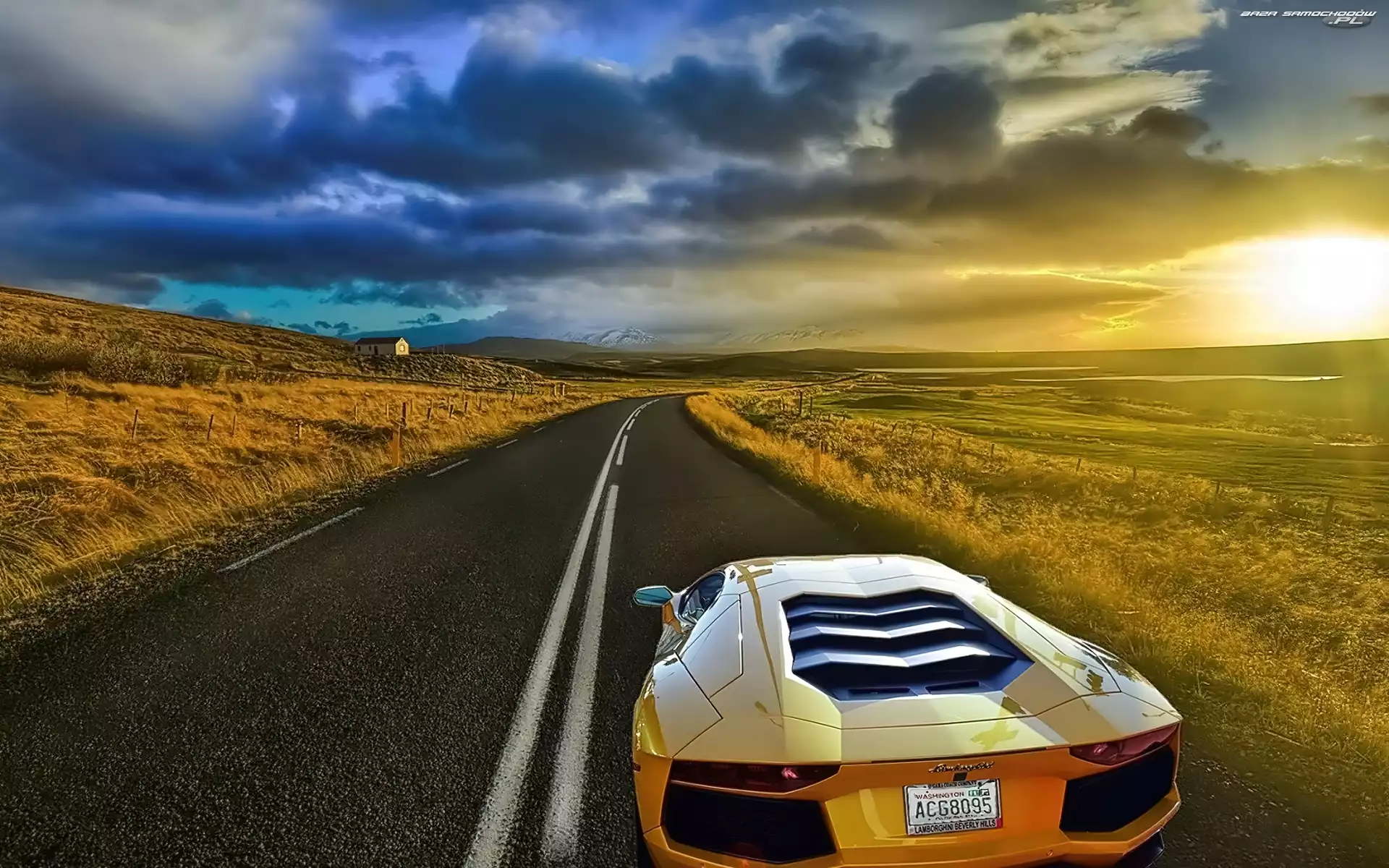 Samochód: Lamborghini, Aventador, Niebo, Droga