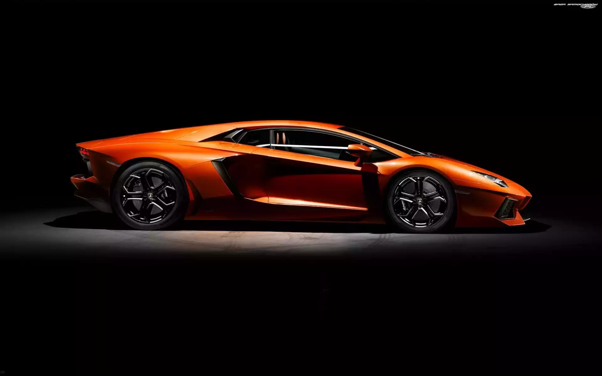 Samochód: Lamborghini Aventador, Strona, Pomarańczowe, Lewa