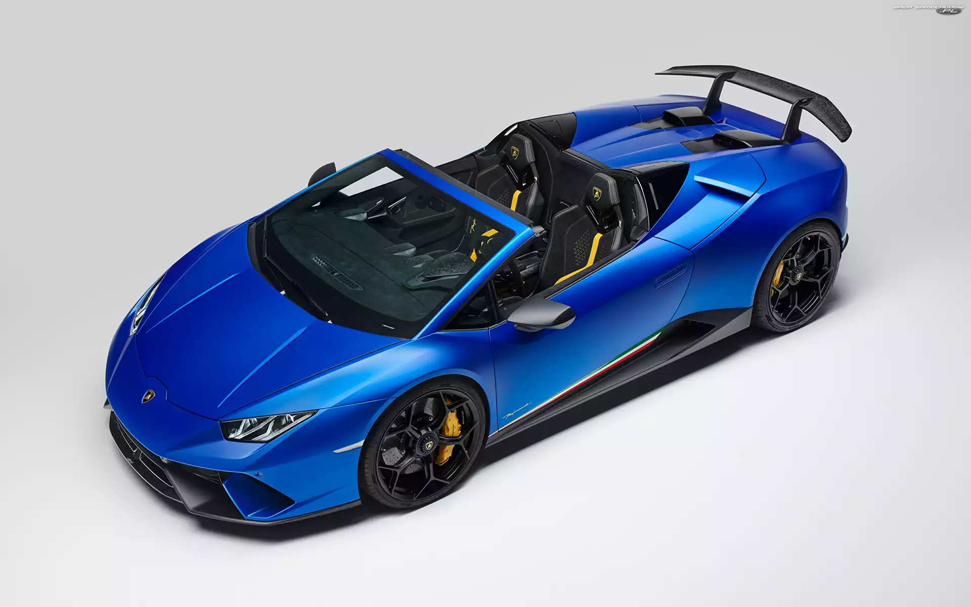 Niebieskie, Lamborghini Huracan Perfomante Spyder- Zdjęcia samochodów