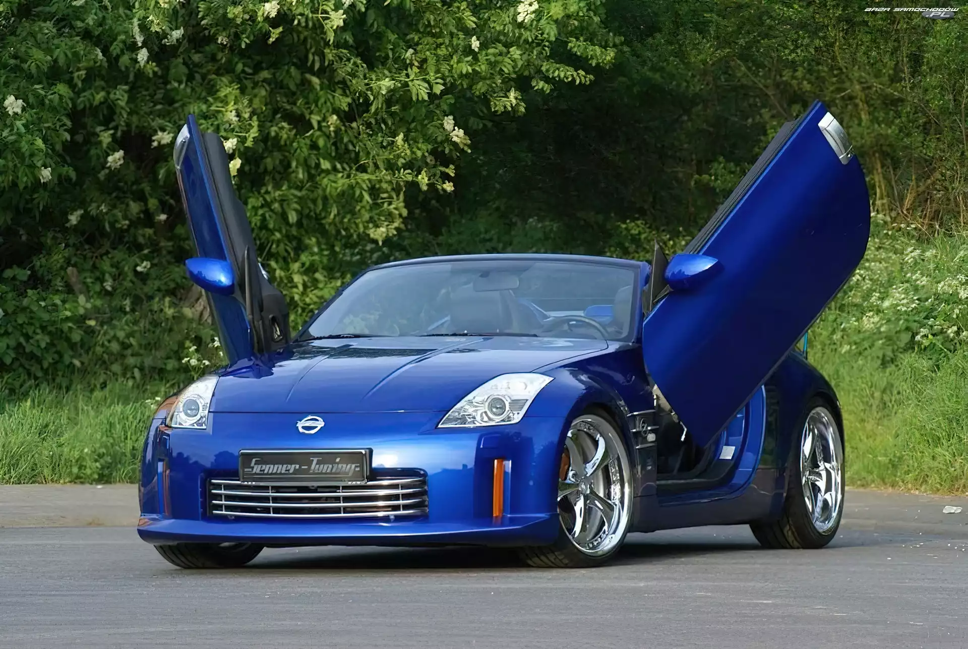 TUNING, Czerwony, Nissan 350Z Pomost, Carlsson, Mercedes W212 Ford GR 1 GTR 650, Gemballa Ford GR1 AC, Alufelgi, BMW X1, Schnitzer Super, Shelby, Ford Mustang Carlsson, Mercedes W204 Tuning, Dacia Sandero Nissan 350Z, TUNING MR600, Zielone, BMW 6 Biturbo, Mercedes ML63 Alufelgi, Brabus, Mercedes SLS Drzewa, Kwitnące, Nissan, Samochód, 350Z