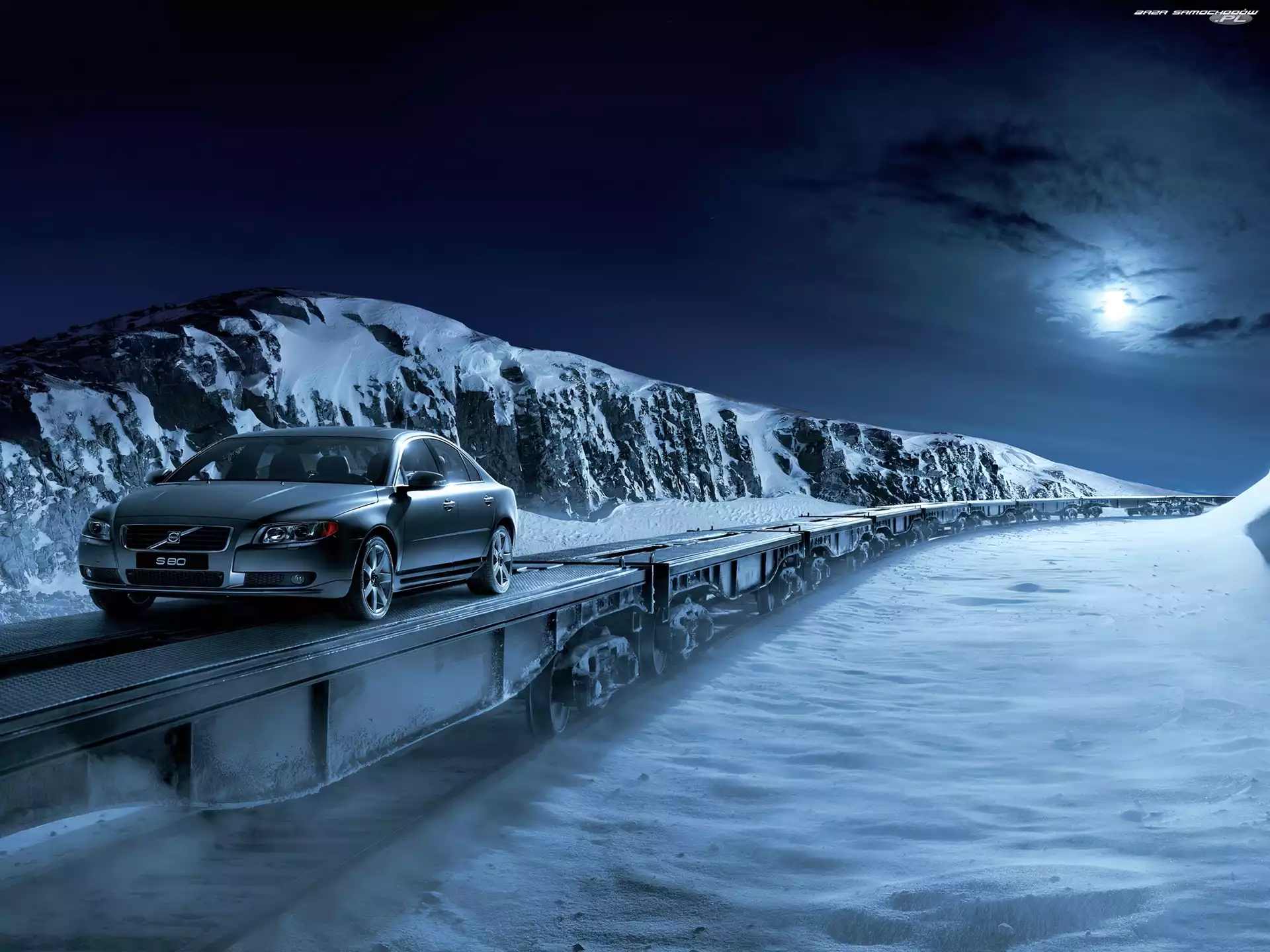 Noc, Góry, S80, Volwo, Zima- Zdjęcia samochodów
